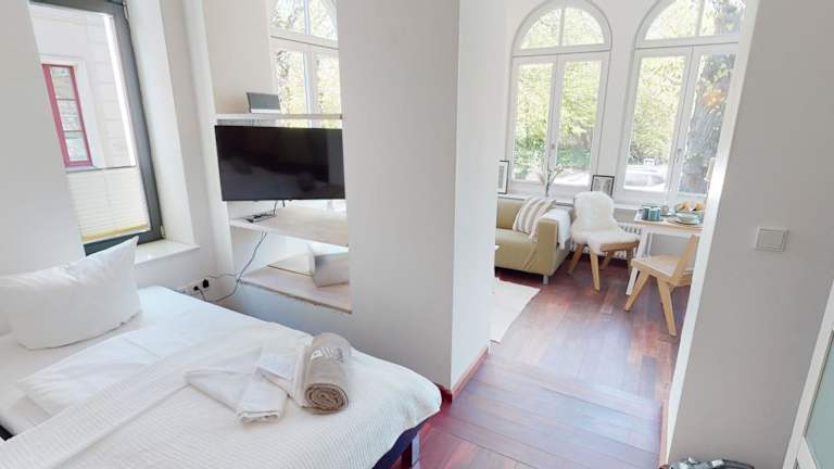 Die Unterkunft Villa Parkblick befindet sich in Rostock, nur 500 m vom Strand in Warnemünde entfernt. Die Entfernung zu Sehenswürdigkeiten wie dem Schiffbau- und Schifffahrtsmuseum liegt bei 7,8 km, während die Neue Messe Rostock 8,5 km und der Hafen Rostock 11 km entfernt sind. Der Zoo Rostock und das Volkstheater Rostock sind jeweils 13 km entfernt. Der nächstgelegene Flughafen ist der Flughafen Rostock-Laage, der sich 49 km von der Unterkunft befindet.