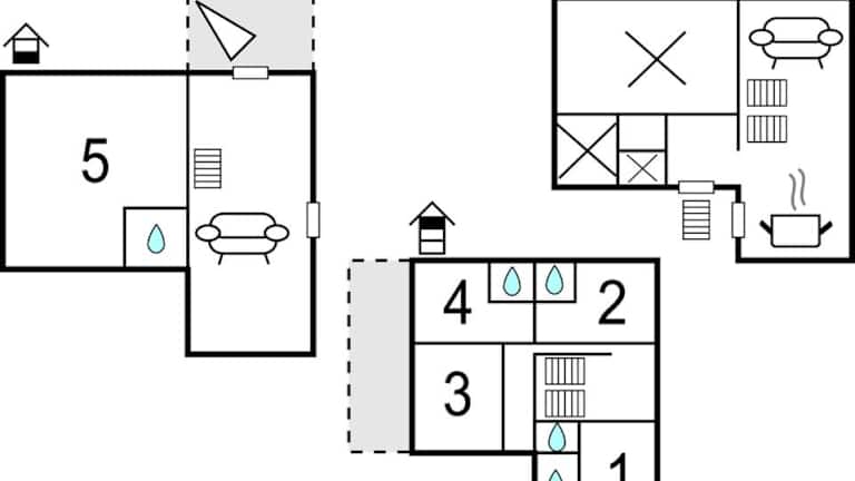 Das Ferienhaus verfügt über insgesamt 5 Schlafzimmer, ein Wohnzimmer und eine voll ausgestattete Küche, die mit einem Kühlschrank und einer Kaffeemaschine ausgestattet ist. Es sind 5 Badezimmer vorhanden, die jeweils mit einer Dusche ausgestattet sind.