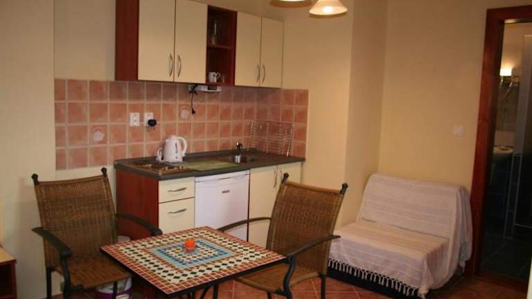 Die Villa Patio liegt in einer ruhigen Gegend in Patince, ganz in der Nähe der Heilquellen und Außenpools. Das Wellnesscenter Patnice ist nur 220 m entfernt. In der Umgebung finden Sie ein Restaurant in nur 50 m Entfernung und ein Lebensmittelgeschäft etwa 2 km entfernt. Für Freizeitaktivitäten gibt es eine Minigolfanlage und Tennisplätze in nur 200 m Entfernung. Wenn Sie gerne reiten möchten, erreichen Sie den Reitstall in Marcelová, der 8 km von der Villa Patio entfernt ist. Die Stadt Komárno ist nur 16 km entfernt und leicht zu erreichen.