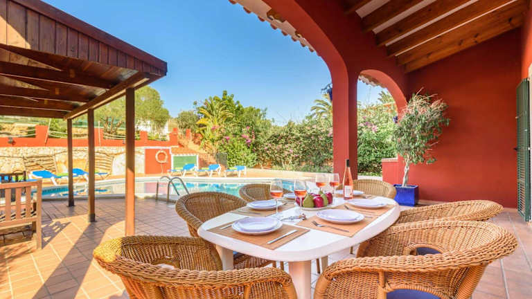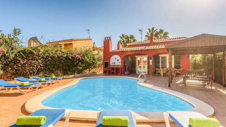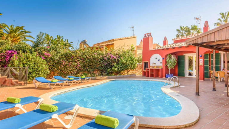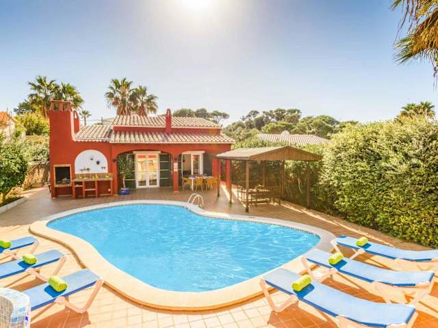 Die Villa Paula in Cala'n Porter ist eine ideale Unterkunft für Ihren Urlaub auf Menorca. Mit ihrer Nähe zum Strand und den Buchten von Playa de Cales bietet sie eine perfekte Ausgangslage für entspannte Tage am Meer. Die Villa selbst überzeugt mit kostenlosem WLAN, Klimaanlage, einem eigenen Pool und einer Terrasse. Genießen Sie Ihren Aufenthalt in den komfortablen Schlafzimmern und der gut ausgestatteten Küche. Entspannen Sie im Garten oder am Außenpool und nutzen Sie den Grill für gesellige Abende. Erkunden Sie die Umgebung und besuchen Sie den Hafen von Mahon oder Es Grau. Der Flughafen Menorca ist ebenfalls gut erreichbar.