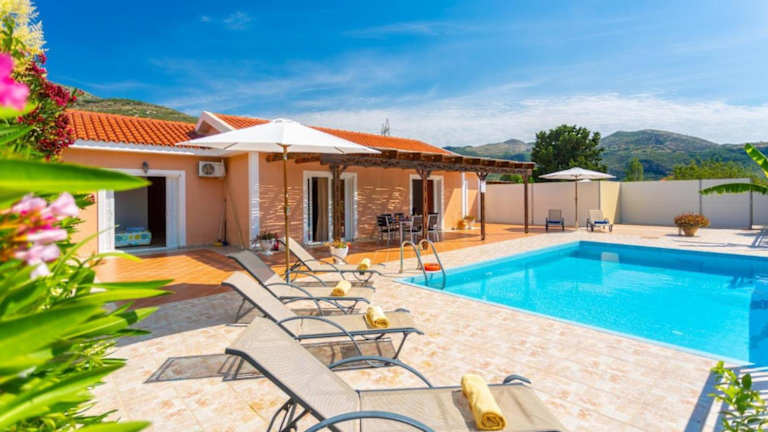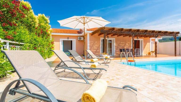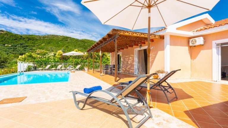 Die Villa Peach in Katelios auf der Insel Kefalonia ist ein wunderschönes Ferienhaus mit einer Terrasse und einem atemberaubenden Meerblick. Die Unterkunft ist von einem malerischen Garten umgeben und bietet den Gästen einen erholsamen und komfortablen Aufenthalt.