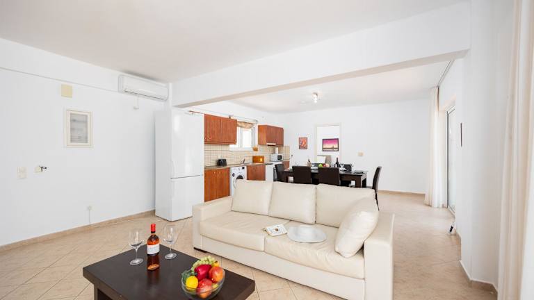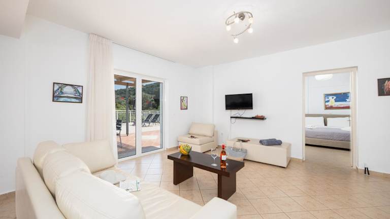 Die Villa Peach verfügt über ein geräumiges Wohnzimmer, das den Gästen viel Platz zum Entspannen bietet. Die voll ausgestattete Küche mit einem Geschirrspüler ermöglicht es den Gästen, ihre eigenen Mahlzeiten zuzubereiten. Ein TV ist ebenfalls vorhanden, um Unterhaltungsmöglichkeiten zu bieten. Das Ferienhaus bietet einen herrlichen Meerblick von der Terrasse aus und ist mit allem ausgestattet, was die Gäste für einen komfortablen Aufenthalt benötigen.
