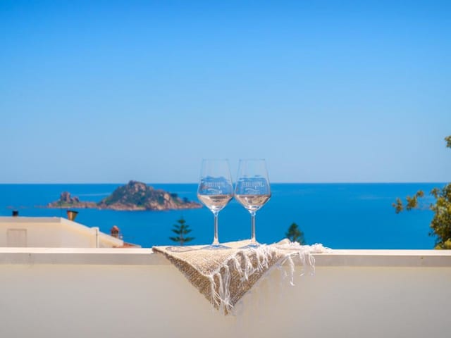 Die klimatisierte Villa umfasst zwei Schlafzimmer, ein Wohnzimmer sowie eine voll ausgestattete Küche mit Kühlschrank und Kaffeemaschine. Außerdem stehen zwei Badezimmer mit Bidet und Whirlpool zur Verfügung. Handtücher und Bettwäsche werden bereitgestellt, und es gibt eine Terrasse für entspannte Stunden.