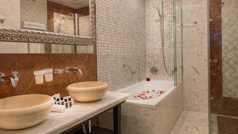 Die Zimmer im Villa Plaza Boutique Hotel & Spa sind luxuriös und stilvoll eingerichtet. Die Betten sind aus hochwertigen Materialien wie Kiefernholz, Kaschmir, Pferden, Baumwolle, Wolle, Lavendel und Seide gefertigt und die Badezimmer sind mit italienischem Marmor, slowakischen Travertin und spanischen Fliesen ausgestattet. Zur weiteren Ausstattung gehören ein Flachbild-Kabel-TV, eine Minibar, ein Telefon, ein Wasserkocher, ein Safe und ein eigenes Bad mit kostenfreien Pflegeprodukten. Einige Zimmer bieten auch einen Balkon.