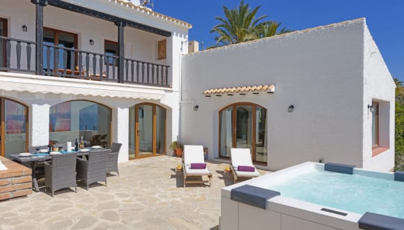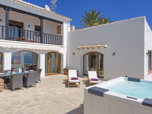 Verbringen Sie unvergessliche Tage in der Villa Poniente in Villajoyosa. Verteilt auf zwei Stockwerke finden Sie drei Schlafzimmer mit zwei angrenzenden Bädern und ein Gästebad, sodass Villa Poniente ausreichend Platz für bis zu 6 Personen bietet. Alle Zimmer sind natürlich klimatisiert. Das Innere der Villa ist rustikal und mediterran mit natürlichen Materialien, insbesondere Holz und Stein. Die luxuriöse und Detail verliebte Einrichtung rundet das Gesamtkonzept ab. Im November 2016 erfolgte die umfangreiche Modernisierung und Sanierung. Die fantastische Lage direkt am Meer garantiert wunderschöne Sonnenuntergänge. Genießen Sie sonnige Tage am Strand oder entspannen Sie im Jaccuzi mit Meerblick. Die geräumige Terrasse mit Kamin und endlosem Meerblick lädt zu Grillabenden ein. Für Fahrzeuge steht eine Doppelgarage zur Verfügung. Villa Poniente liegt in der kleinen Hafenstadt Villajoyosa, einer historischen Kleinstadt an der spanischen Costa Blanca. Diese ist bekannt für seine wunderschönen Sandstrände und die farbenprächtig bemalten Häuser direkt an der Küste. Flanieren Sie durch die Altstadt, über die Märkte mit Spezialitäten aus der Region und vorbei an der 125 Jahre alten Schokoladenfabrik mit angrenzendem Museum.