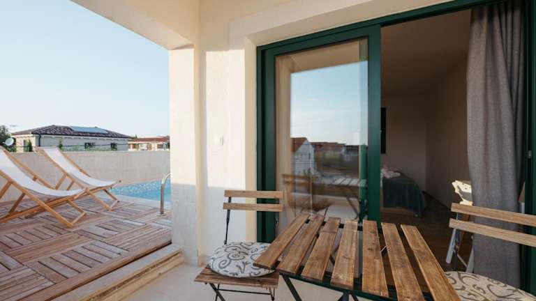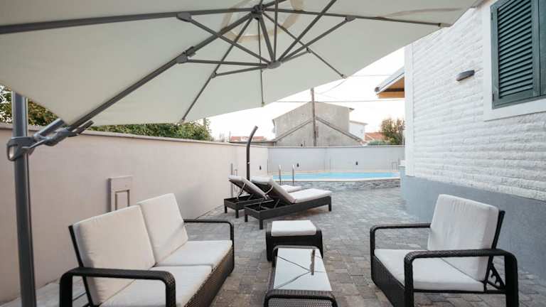 Die Villa Privlaka bietet geräumige und komfortable Unterkünfte mit 4 Schlafzimmern und 4 Badezimmern. Das Wohnzimmer ist stilvoll eingerichtet und verfügt über einen Flachbild-Kabel-TV, einen Blu-ray-Player, einen DVD-Player und einen CD-Player. Die voll ausgestattete Küche bietet alles, was Sie für die Zubereitung Ihrer Mahlzeiten benötigen, einschließlich eines Kühlschranks und einer Kaffeemaschine. Die Villa ist klimatisiert und bietet zudem einen Balkon und eine Terrasse, von denen aus Sie den Poolblick genießen können.
