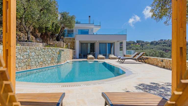 Die Villa Prokimea by MediterraneanVillas in Makrádes ist eine traumhafte Unterkunft mit saisonalem Außenpool, großem Garten und Terrasse. Hier können Sie den atemberaubenden Meerblick genießen und sich in der privaten Villa mit eigenem Pool und Grillmöglichkeiten entspannen. Die klimatisierte Villa bietet Platz für bis zu 6 Personen und verfügt über 3 separate Schlafzimmer, eine voll ausgestattete Küche und 3 Badezimmer. Die Umgebung lädt zu Wanderausflügen ein und der Strand Kastelli ist nur 1,7 km entfernt. Der internationale Flughafen Korfu ist 27 km von der Villa entfernt.