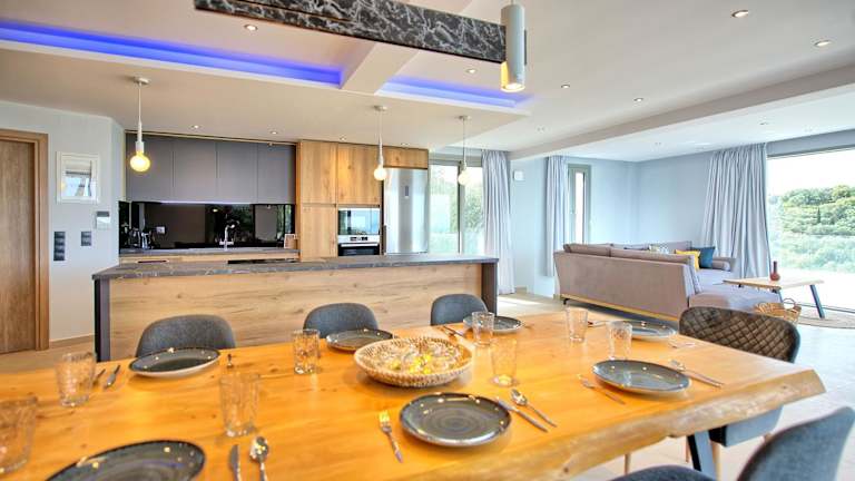Die Villa Prokimea by MediterraneanVillas bietet Platz für bis zu 6 Personen und verfügt über 3 separate Schlafzimmer, die für Komfort und Privatsphäre sorgen. Die klimatisierten Zimmer sind geschmackvoll eingerichtet und bieten eine entspannende Atmosphäre. Die Villa verfügt über eine voll ausgestattete Küche mit einem Kühlschrank und einem Geschirrspüler, in der Sie Ihre eigenen Mahlzeiten zubereiten können. Es gibt auch 3 Badezimmer, die alle modern und komfortabel sind.