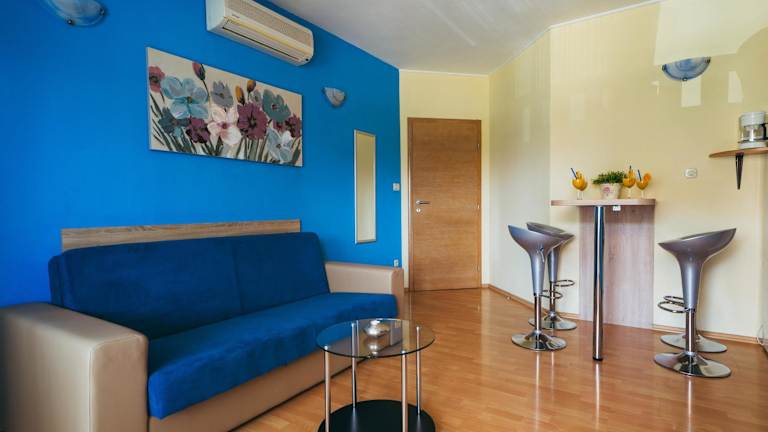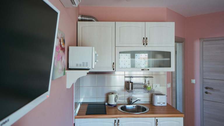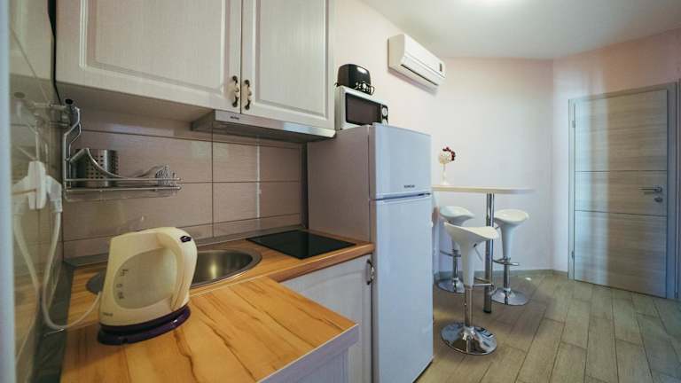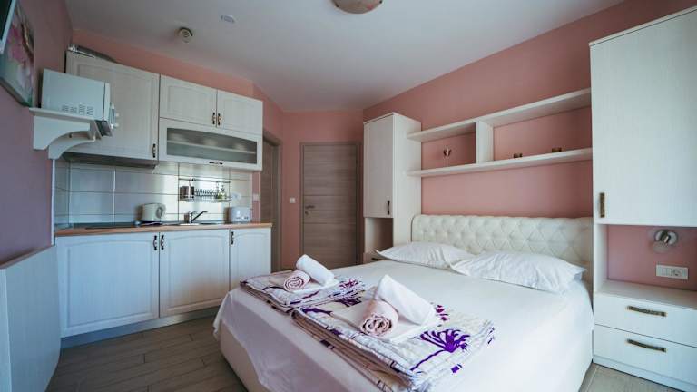 Die Wohneinheiten der Villa Promajna 5 sind mit einem Balkon ausgestattet, der einen Blick auf den Pool bietet. Jedes Zimmer verfügt über einen Sitzbereich, einen Satelliten-Flachbild-TV sowie eine voll ausgestattete Küche mit Kühlschrank, Mikrowelle und Herdplatte. Des Weiteren sind ein Wasserkocher und ein eigenes Badezimmer mit Dusche und Haartrockner vorhanden.
