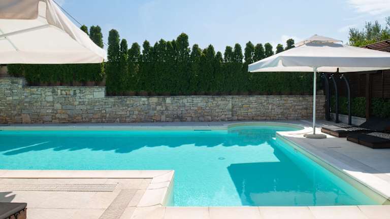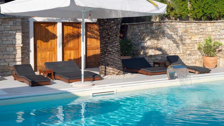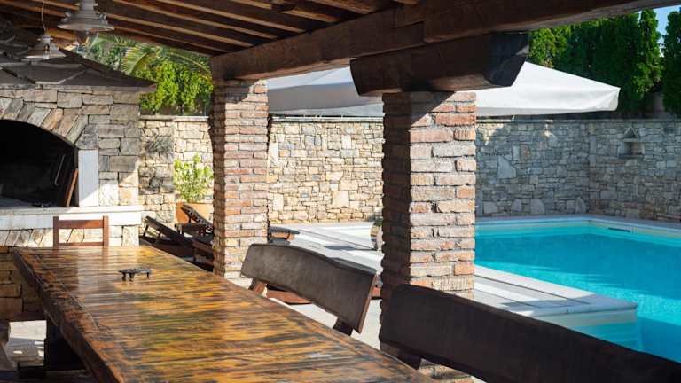 Die klimatisierte Villa besteht aus 6 Schlafzimmern, einem Wohnzimmer, einer voll ausgestatteten Küche mit Kühlschrank und Kaffeemaschine sowie 8 Badezimmern, die jeweils mit einer Dusche und einem Haartrockner ausgestattet sind. Handtücher und Bettwäsche werden bereitgestellt.