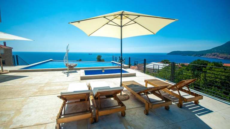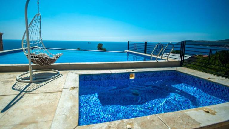 Die Villa bietet 6 Schlafzimmer und 5 Badezimmer, ausgestattet mit Bettwäsche und Handtüchern. Zu den Annehmlichkeiten gehören ein Flachbild-TV mit Kabelkanälen, eine voll ausgestattete Küche sowie eine Terrasse mit Meerblick. Die Unterkunft verfügt zudem über einen Whirlpool.