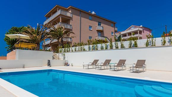 Die Villa Ria ist der ideale Ort für Ihren erholsamen Urlaub. Die Apartments bieten nicht nur einen Außenpool mit Meerblick, sondern auch eine ruhige Lage zwischen Zadar und Biograd. Die geräumigen Unterkünfte erstrecken sich über 2 Etagen und verfügen über 4 Terrassen. Der Strand ist nur 250 m entfernt und die Umgebung eignet sich perfekt für Wanderungen, Besuche der nationalen Seen und Ausflüge zu anderen Inseln. Entdecken Sie die Schönheit von Vodice, das 42 km entfernt liegt, oder erreichen Sie Biograd na Moru in nur 9 km. Der Flughafen Zadar ist nur 10 km entfernt und bietet eine bequeme Anreisemöglichkeit.