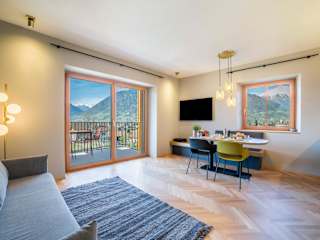 Die Unterkunft verfügt über zwei Schlafzimmer und zwei Badezimmer. Zur Ausstattung gehören Bettwäsche, Handtücher, ein TV mit Satellitenkanälen, eine voll ausgestattete Küche und ein Balkon mit Bergblick.
