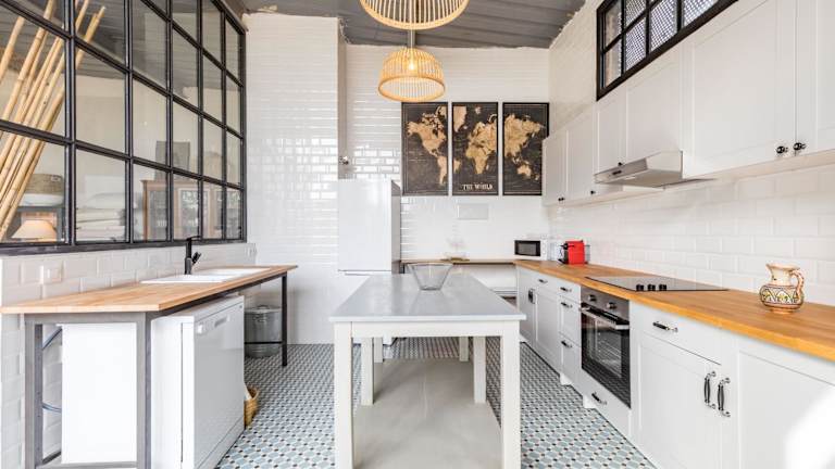 Die Unterkunft verfügt über eine gut ausgestattete Küche mit einem Kühlschrank und einem Geschirrspüler, in der Gäste ihre Mahlzeiten selbst zubereiten können. Es steht auch ein Grill zur Verfügung.