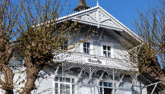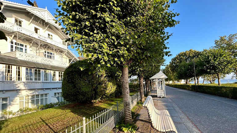 Die Villa Ruscha befindet sich in Binz, nur 90 m vom Strand entfernt. Die Umgebung bietet Zugang zu verschiedenen kulturellen und natürlichen Attraktionen, wie der Naturbühne Ralswiek, die 25 km entfernt liegt. Weitere Sehenswürdigkeiten sind der Rügendamm in 42 km und die Marienkirche Stralsund in 46 km Entfernung.
