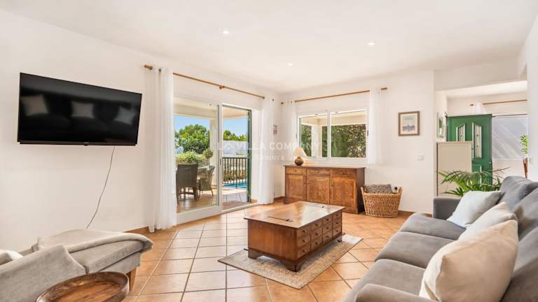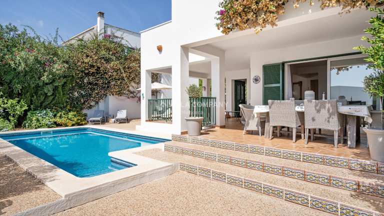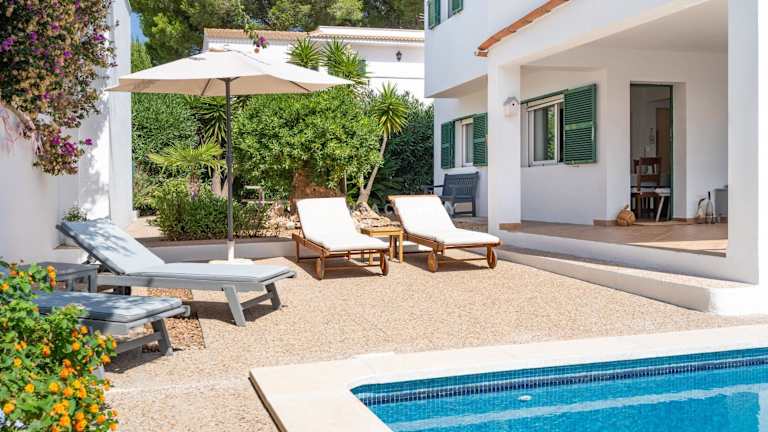 Die Villa Sa Calma 5 in Es Mercadal ist der perfekte Ort für einen entspannten und komfortablen Urlaub auf Menorca. Die Villa bietet geräumige und gut ausgestattete Zimmer, einen schönen Außenpool und einen Garten. Die Lage ist ideal, nur wenige Kilometer vom Strand Playa Arenal d'en Castell und dem Hafen Mahon entfernt. Ein Highlight der Villa ist die Terrasse mit Blick auf den Pool, auf der man gemütliche Stunden verbringen kann.
