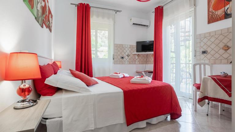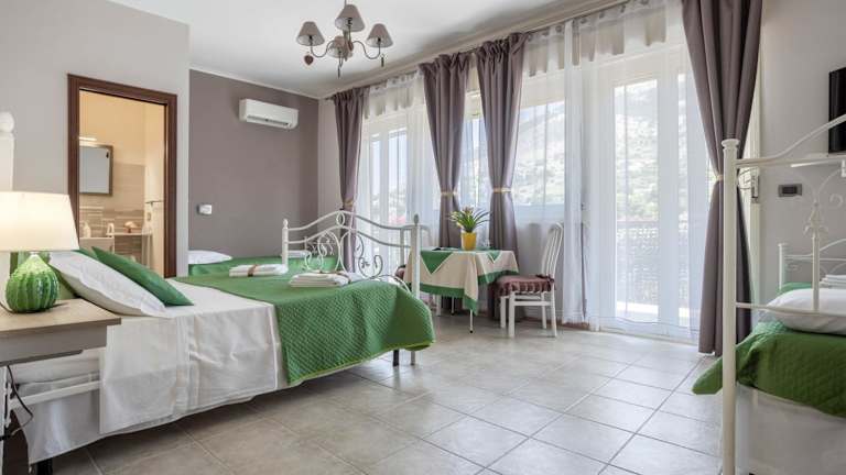 Die Zimmer der Villa Salvatore sind komfortabel und bieten alles, was Sie für einen angenehmen Aufenthalt benötigen. Jedes Zimmer verfügt über Klimaanlage, einen Schreibtisch, einen Flachbild-TV und ein eigenes Badezimmer. Bettwäsche, Handtücher und ein Balkon mit Blick auf die Berge sind ebenfalls vorhanden. Ein Kühlschrank steht zur Verfügung, damit Sie Ihre Getränke und Snacks kühl halten können.
