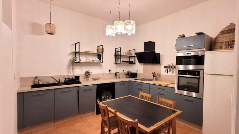 Die Unterkunft beinhaltet eine Küche, die mit einem Kühlschrank und einem Geschirrspüler ausgestattet ist. Für Gäste, die zusätzlichen Komfort wünschen, können Handtücher und Bettwäsche gegen Aufpreis bereitgestellt werden.