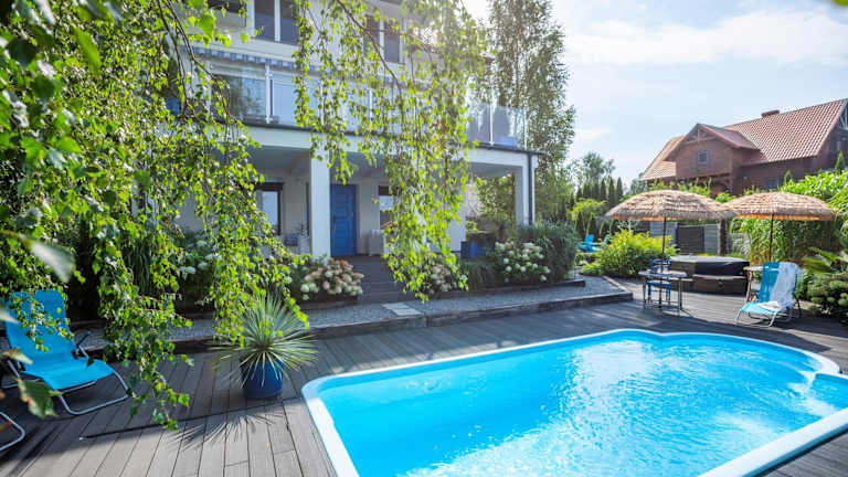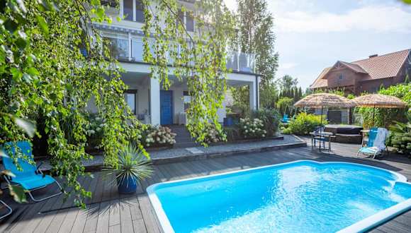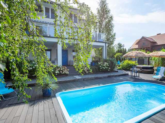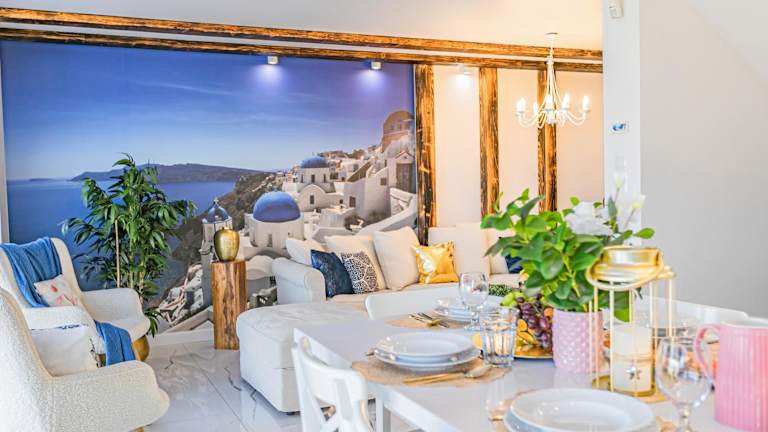 Die Villa Santorini verfügt über einen saisonalen Außenpool, in dem Sie an warmen Tagen ein erfrischendes Bad nehmen können. Der Garten bietet Ihnen außerdem die Möglichkeit, sich zu entspannen und die Natur zu genießen. Wenn Sie aktiv sein möchten, können Sie den Ethnographischen Park Kaszuby besuchen und dort verschiedene Freizeitaktivitäten wie Wandern oder Radfahren ausprobieren.