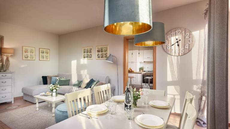 Das Apartment in der Villa Scarponi Assisi befindet sich im Erdgeschoss und verfügt über 2 Schlafzimmer, die Ihnen einen erholsamen Schlaf bieten. Das Apartment ist geschmackvoll eingerichtet und verfügt über einen Flachbild-TV, der Ihnen Unterhaltungsmöglichkeiten bietet. Die voll ausgestattete Küche mit Geschirrspüler, Backofen, Waschmaschine und Kühlschrank ermöglicht es Ihnen, Ihre Mahlzeiten bequem zuzubereiten.