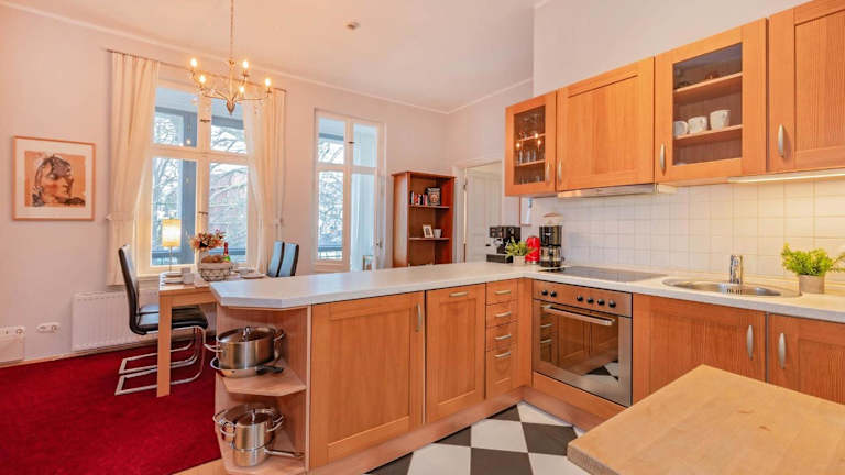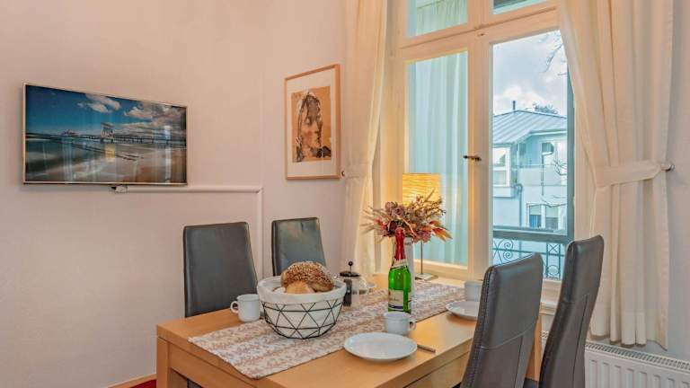 Verbringen Sie Ihren Aufenthalt in der Villa Schlossbauer - Ferienwohnung 12 in Heringsdorf und genießen Sie den kostenlosen WLAN-Zugang sowie den atemberaubenden Meerblick. Das Apartment bietet Ihnen Privatparkplätze und ist nur wenige Gehminuten von den Stränden Heringsdorf und Ahlbeck entfernt. In der Umgebung können Sie verschiedene Aktivitäten wie Wandern, Windsurfen und Radfahren ausüben. Das Apartment verfügt über eine Terrasse mit Blick auf die Stadt, ein Schlafzimmer, ein Wohnzimmer, einen Flachbild-TV und eine voll ausgestattete Küche mit Kühlschrank und Backofen. Das Badezimmer ist mit einer Badewanne ausgestattet. Handtücher und Bettwäsche sind gegen Aufpreis erhältlich. Nutzen Sie auch den Fahrradverleih des Apartments, um die Umgebung zu erkunden. Beliebte Sehenswürdigkeiten in der Nähe sind der Strand Bansin, das Museum Villa Irmgard und das Observatorium. Der Flughafen Heringsdorf ist nur 15 km entfernt.