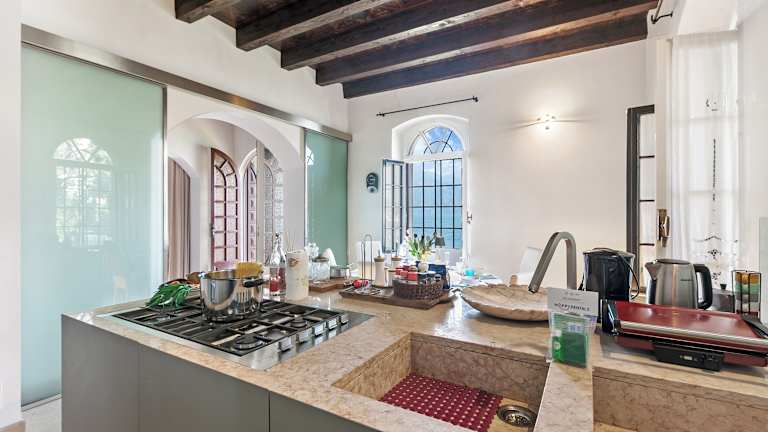 Die Villa umfasst vier Schlafzimmer und eine Küche, die mit einem Kühlschrank und einem Geschirrspüler ausgestattet ist. Drei Badezimmer sind vorhanden, darunter mit einem Bidet, Haartrockner und Waschmaschine. Handtücher und Bettwäsche werden bereitgestellt. Die Unterkunft bietet Nichtraucherzimmer sowie Familienzimmer.