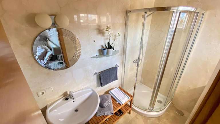 Die Villa bietet vier Schlafzimmer, ein Wohnzimmer und eine voll ausgestattete Küche mit Kühlschrank und Kaffeemaschine. Es gibt drei Badezimmer, die jeweils mit Dusche und Bidet ausgestattet sind. In der Unterkunft sind Handtücher und Bettwäsche vorhanden. Die Villa ist klimatisiert und bietet Annehmlichkeiten wie WLAN und einen Garten.