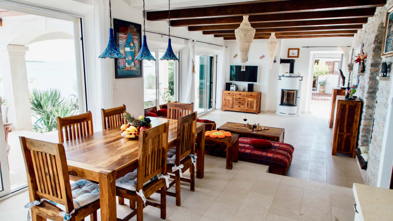 Das 350 qm große Feriendomizil verfügt über 5 Schlafzimmer mit Badezimmer. Alle Zimmer sind mit einem Flat-Smart-TV ausgestattet. Von der großzügigen Küche mit Ess- und Wohnbereich geht es direkt auf die Veranda mit Panoramablick.