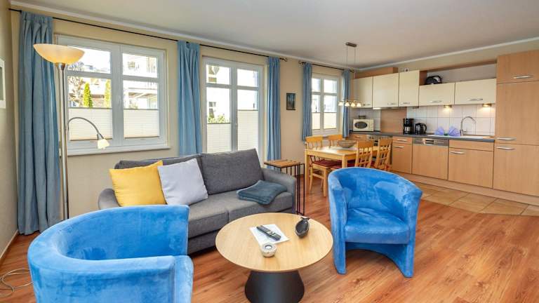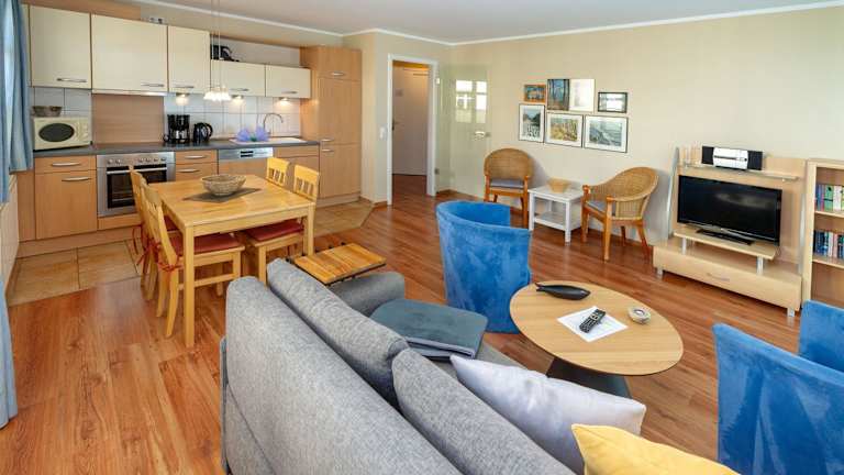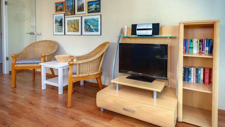 Das Apartment verfügt über ein gemütliches Schlafzimmer und ein Wohnzimmer mit Sat-TV. Die voll ausgestattete Küchenzeile mit Kühlschrank und Backofen bietet Ihnen die Möglichkeit, Ihre eigenen Mahlzeiten zuzubereiten. Das Badezimmer ist mit einer Dusche ausgestattet. Handtücher und Bettwäsche können gegen Aufpreis zur Verfügung gestellt werden.