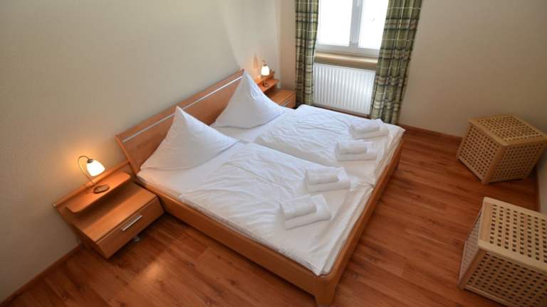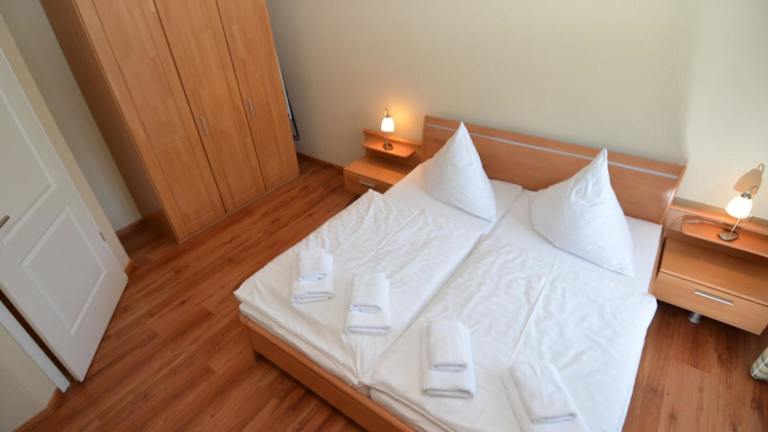 Das Apartment verfügt über ein Schlafzimmer, ein Wohnzimmer mit Sat-TV und eine voll ausgestattete Küchenzeile mit Kühlschrank und Backofen. Das Badezimmer ist mit einer Dusche ausgestattet. Handtücher und Bettwäsche können gegen Aufpreis zur Verfügung gestellt werden. Ein Balkon und eine Terrasse laden zum Entspannen ein.