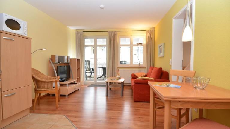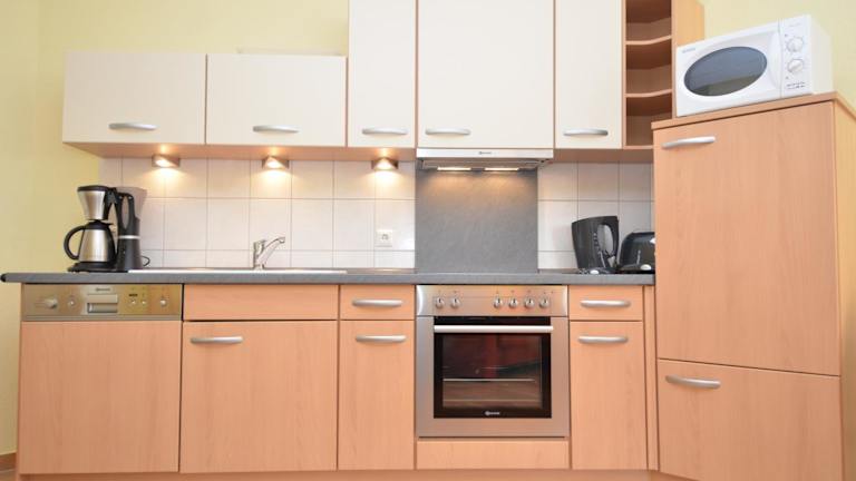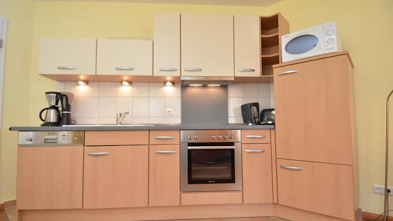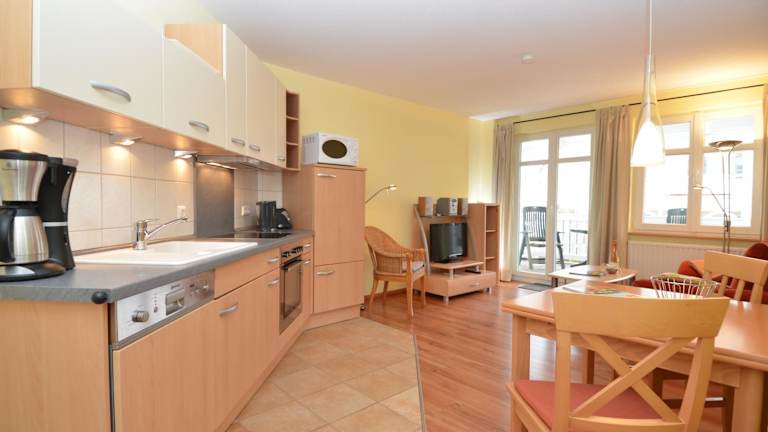 Im Apartment können die Gäste ihre Mahlzeiten selbst zubereiten, da es eine voll ausgestattete Küchenzeile gibt. Alternativ gibt es in der Umgebung des Ostseebads Sellin eine Vielzahl von Restaurants und Cafés, in denen Sie lokale Spezialitäten und internationale Küche genießen können.