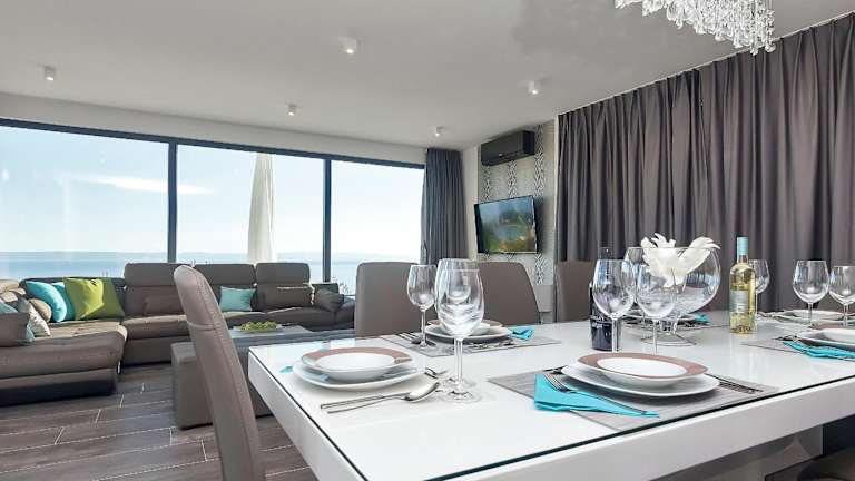 Die Villa Selina - Nera liegt etwa 1,5 km vom Strand Biloševac entfernt. In der Nähe befinden sich auch andere beliebte Strände wie der FKK-Strand Cvitačka, der Strand Ratac und der Strand Makarska. Die Villa bietet eine gute Anbindung an die Umgebung und ermöglicht es den Gästen, die Schönheit der Region zu erkunden. Der Flughafen Brac ist etwa 35 km entfernt und die Unterkunft bietet einen kostenpflichtigen Flughafentransfer.