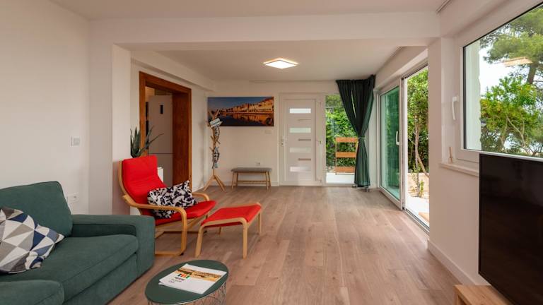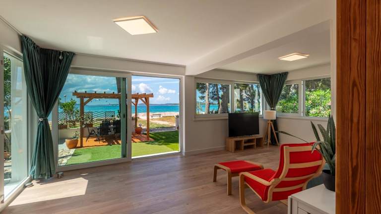 Das Freizeitangebot in der Umgebung umfasst Aktivitäten wie Radfahren, Angeln, Windsurfen, Wandern, Tauchen und Schnorcheln. Es stehen zudem Sonnenliegen, Sonnenschirme und ein Picknickbereich zur Verfügung, um die Strandatmosphäre optimal zu genießen.