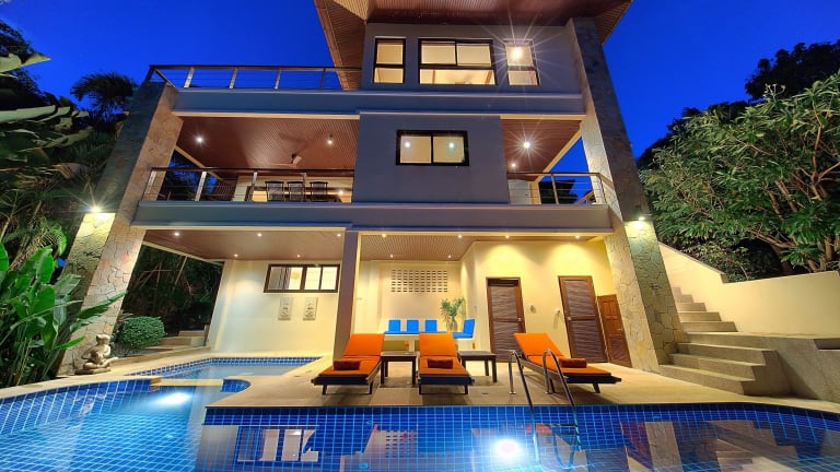 Villa Seven Swifts - Bangrak Ocean View bietet Unterkünfte mit Bergblick, und steht Gästen mit kostenlosen Fahrrädern, einem Außenpool, einem Garten sowie Grillmöglichkeiten zur Verfügung. WLAN ist kostenlos verfügbar, ebenso wie ein Privatparkplatz.
