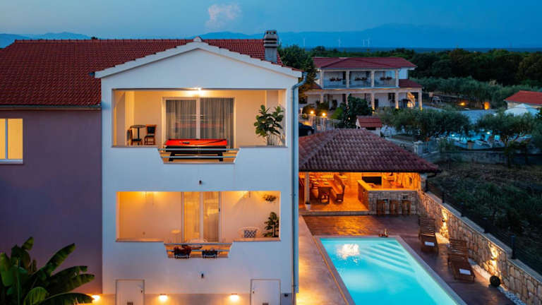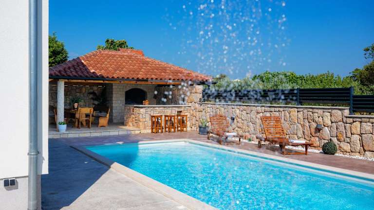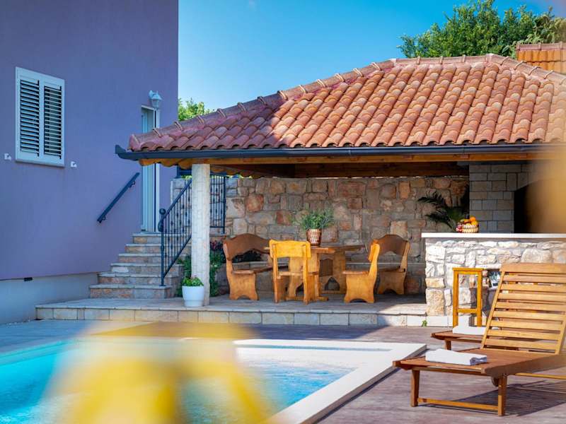 Erleben Sie einen erholsamen Urlaub in der Villa Silente in Oklaj, die mit einer privaten Poolanlage, einem Balkon und einem atemberaubenden Gartenblick beeindruckt. Genießen Sie die Ruhe und Privatsphäre dieses klimatisierten Ferienhauses mit 3 Schlafzimmern, das über einen Flachbild-TV und ein gemütliches Wohnzimmer verfügt. Die gut ausgestattete Küche bietet Ihnen die Möglichkeit, Ihre eigenen Mahlzeiten zuzubereiten. Die Villa Silente liegt in der Nähe verschiedener Sehenswürdigkeiten wie der Festung Barone und den Krka-Wasserfällen. Der Flughafen Split ist ebenfalls gut erreichbar. Kostenfreie Privatparkplätze stehen Ihnen zur Verfügung.