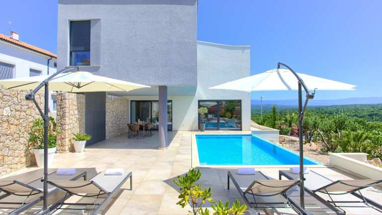 Die Villa Silente in Krk ist der perfekte Ort für einen entspannten Urlaub. Mit einem Außenpool, einem Garten und einer Terrasse können Sie die Sonne und die schöne Aussicht auf die Stadt genießen. Das kostenfreie WLAN und die kostenfreien Privatparkplätze machen Ihren Aufenthalt noch angenehmer. Die Villa bietet Platz für bis zu 6 Personen und verfügt über 3 Schlafzimmer, ein Wohnzimmer und eine voll ausgestattete Küche. Auch die 3 Badezimmer sind modern und mit kostenlosen Pflegeprodukten ausgestattet. Handtücher und Bettwäsche werden gestellt. Grillmöglichkeiten stehen Ihnen ebenfalls zur Verfügung. In der Umgebung gibt es viele Aktivitäten wie Wandern, Windsurfen, Angeln, Kanufahren und Radfahren. Besuchen Sie auch das nahegelegene Franziskanerkloster Kosljun und den Yachthafen Punat. Der Flughafen Rijeka ist nur 26 km entfernt und bietet einen kostenpflichtigen Flughafentransfer.