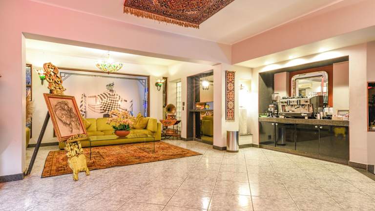 Das Hotel bietet ein reichhaltiges Frühstück jeden Morgen. Zusätzlich gibt es ein À-la-carte-Menü zum Mittag- und Abendessen, das in den verschiedenen Erholungsbereichen der Villa angeboten wird. Gäste können auch die Bar im Garten nutzen und im Spielezimmer mit Billardtisch entspannen.
