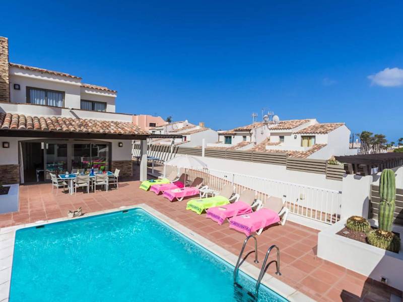 Die Unterkunft bietet klimatisierte Übernachtungsmöglichkeiten mit einem eigenen Pool. Die Villa verfügt über 3 Schlafzimmer, eine voll ausgestattete Küche mit Geschirrspüler und Mikrowelle sowie 2 Badezimmer, die mit einer Dusche, Haartrockner und Waschmaschine ausgestattet sind. WLAN ist kostenlos verfügbar. Die Villa ist eine Nichtraucherunterkunft.