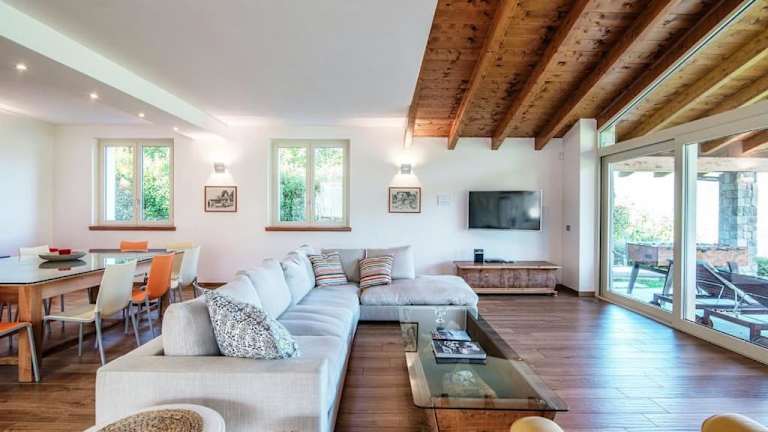 Die Villa bietet komfortable Unterkünfte mit Bettwäsche und Handtüchern. Zur Ausstattung gehören ein Flachbild-TV, ein Essbereich sowie eine voll ausgestattete Küche. Besonders hervorzuheben ist die Terrasse, die einen Blick auf die Berge bietet.