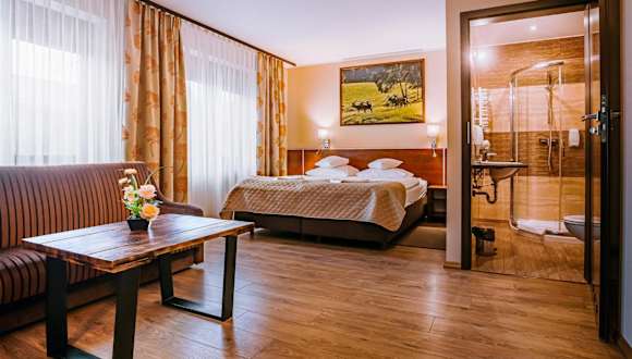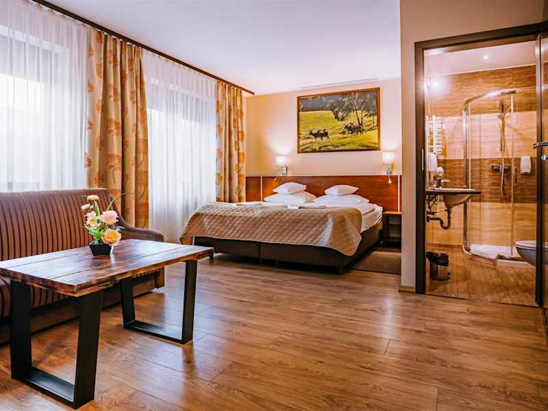 Die Zimmer der Villa Skomanda sind klassisch eingerichtet und bieten einen großen Sitzbereich, einen Schreibtisch, einen Wasserkocher und einen Kühlschrank. Jedes Zimmer ist zudem mit einem Flachbild-TV ausgestattet. Das eigene Bad verfügt über eine Dusche und Handtücher. An der Rezeption steht ein Bügeleisen zur Verfügung. WLAN nutzen Sie in allen Zimmern kostenfrei.