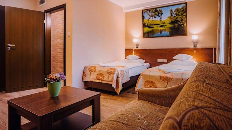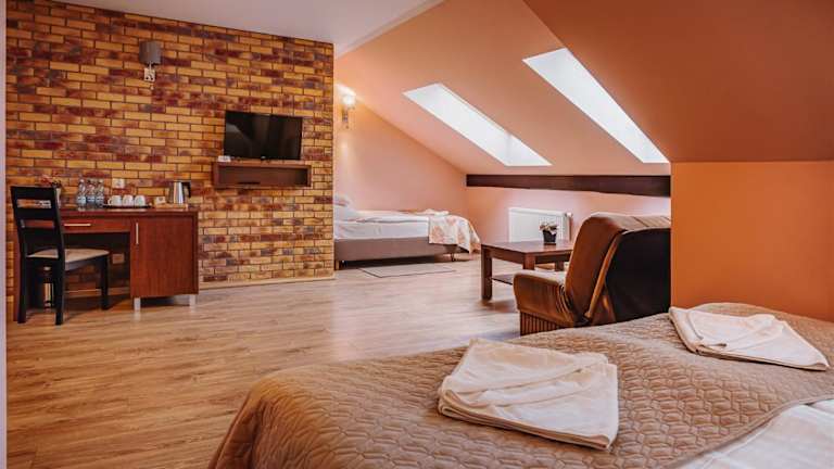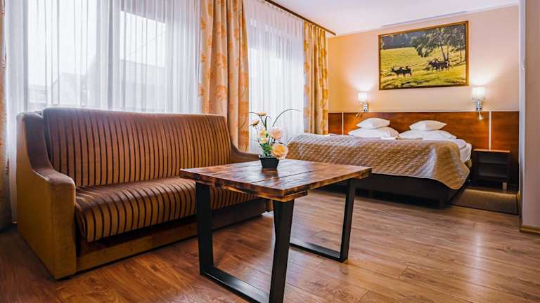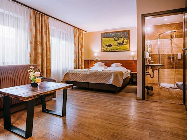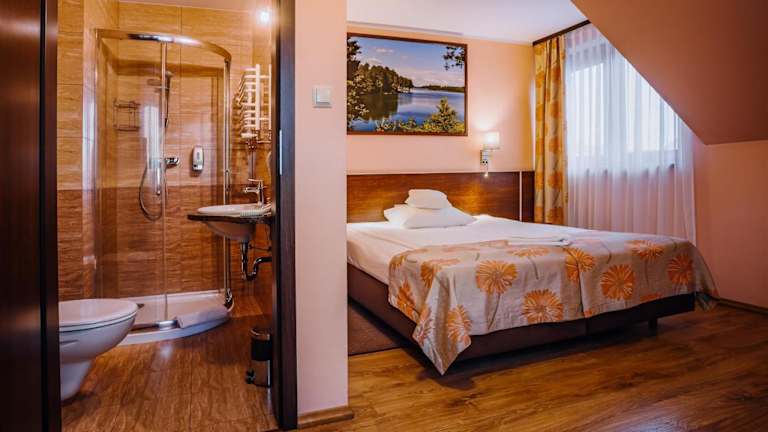 Die Villa Skomanda befindet sich am Stadtrand von Augustów, in der Nähe des Augustów-Kanals und des Augustów Primeval Viertels. Die Lage ist ideal für Naturliebhaber und bietet zahlreiche Möglichkeiten für Outdoor-Aktivitäten wie Radfahren und Wandern. Der städtische Strand, an dem Sie Wasserski fahren können, ist nur 3,6 km entfernt. Die Seen Sajno, Necko und Białe sind etwa 4 km von der Villa entfernt und das Stadtzentrum von Augustów erreichen Sie nach nur 1,8 km.
