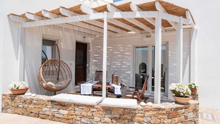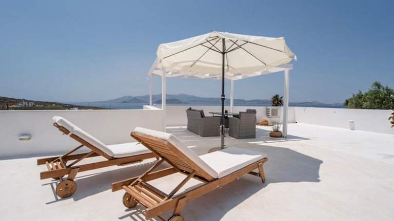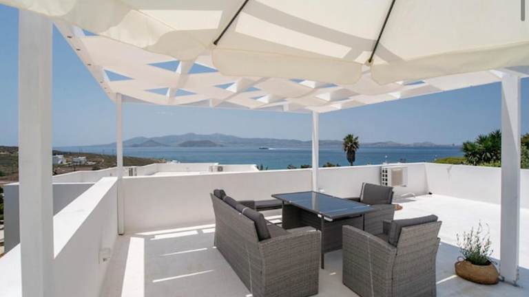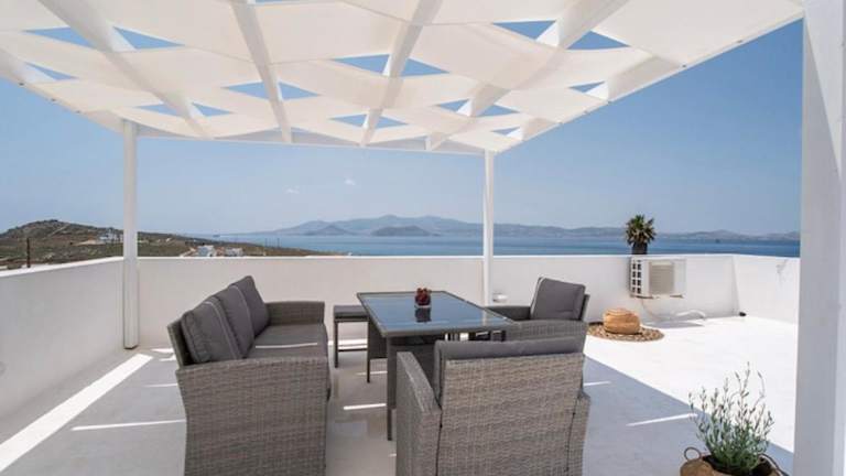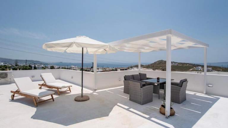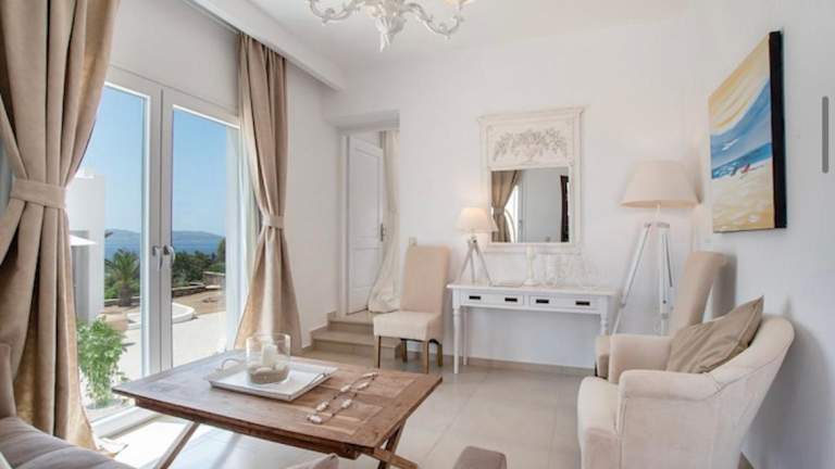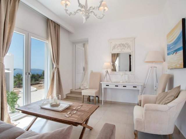 Die Villa im Kykladen-Stil ist in Weißtönen gehalten und bietet eine gemütliche und komfortable Unterkunft. Sie verfügt über eine voll ausgestattete Küche, in der Sie Ihre eigenen Mahlzeiten zubereiten können. Zur weiteren Ausstattung gehören ein TV, kostenfreies WLAN, ein DVD-Player, eine Waschmaschine und ein Haartrockner. Genießen Sie den Meerblick von der Terrasse und nutzen Sie den Grill für ein entspanntes BBQ im Garten.
