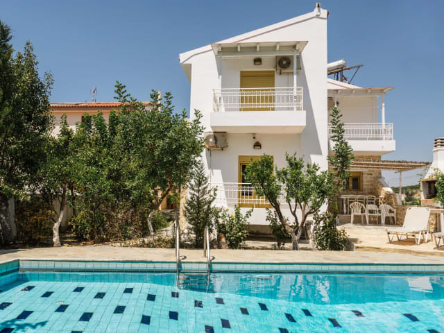 Unser 175qm große Ferienhaus Villa Sofia bietet seinen Gästen 3 Schlafzimmer, 1 Badezimmer und ein Gäste-WC. Insgesamt ist unsere Villa Sofia verfügbar für bis zu 6 Personen. Jedes Zimmer verfügt über einen Balkon mit traumhaften Blick auf das Ida-Gebirge oder das Libysche Meer. Die große, vollausgestattete Küche sowie der Außen-Grill laden zum gemeinsamen Kochen und Beisammensein ein. Im Wohnbereich sorgt ein Kamin für gemütliche Atmosphäre, die durch ein kretisches Sofa und einen bequemen Schaukelstuhl abgerundet wird. Lass deine Seele baumeln und genieße die kretische Sonne am 30qm großen Swimming-Pool. Der großzügig bepflanzte Garten und die Lage des Hauses gewährleisten absolute Privatssphäre. Unsere Anlage ist ruhig gelegen, dennoch erreichst du innerhalb von 10 Minuten zu Fuß den Dorfplatz von Pitsidia, an dem in den Sommermonaten oft musikalische Veranstaltungen stattfinden. Der 4 km lange Strand "Komos" befindet sich in der anderen Richtung und kann bequem mit dem Auto innerhalb von 5 Minuten erreicht werden. Auf Anfrage kann die Villa Sofia auch mit 7 oder 8 Personen genutzt werden, da sie noch über ein weiteres Schlafzimmer und Badezimmer verfügt, das dazu geöffnet werden kann. Frag uns einfach!