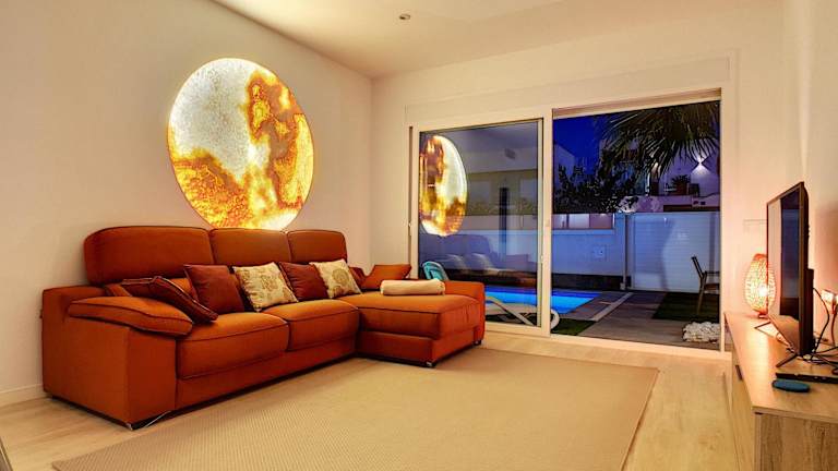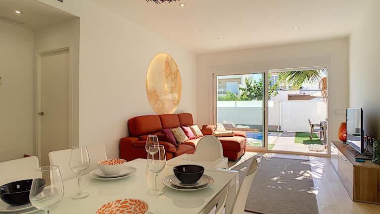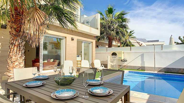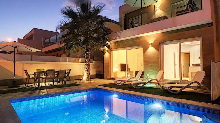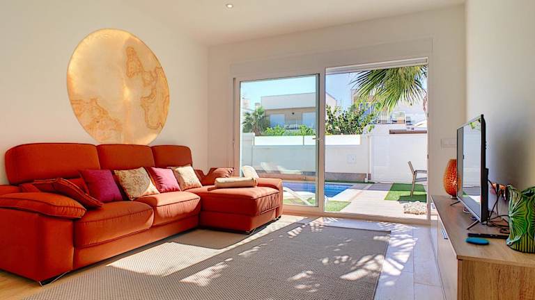 Die Villa Sol - San Pedro del Pinatar in San Pedro del Pinatar ist eine ideale Unterkunft für einen entspannten Urlaub. Mit einem Außenpool, einem schönen Garten und einer Terrasse bietet sie eine perfekte Umgebung, um die Sonne zu genießen. Das kostenfreie WLAN ermöglicht es Ihnen, mit Ihren Lieben in Verbindung zu bleiben, während Sie den atemberaubenden Poolblick genießen. Die klimatisierte Villa verfügt über 3 Schlafzimmer, ein gemütliches Wohnzimmer und eine voll ausgestattete Küche. Handtücher und Bettwäsche werden gestellt, damit Sie sich wie zu Hause fühlen. Ein besonderes Highlight ist der Whirlpool, der Ihnen zur Verfügung steht. In der Umgebung können Sie wunderbar Rad fahren und die Strände El Mojon und La Mota erreichen Sie in kurzer Entfernung. Der internationale Flughafen Murcia-Region ist nur 37 km entfernt.