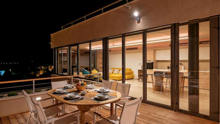Alle Wohneinheiten bieten einen Blick auf das Meer oder die Berge und sind mit einer Küche ausgestattet. Zur Küchenausstattung gehören ein Kühlschrank, ein Geschirrspüler, ein Ofen, eine Kaffeemaschine und ein Wasserkocher. Des Weiteren stehen ein eigenes Badezimmer mit Dusche sowie kostenlose Pflegeprodukte zur Verfügung.