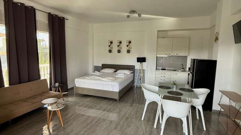 Die Villa Spartandom liegt in Gerakini und ist nur 200 m vom Meer entfernt. Die Lage bietet die Möglichkeit, die wunderschönen Strände und das klare Wasser der Region zu genießen. Gerakini ist auch ein guter Ausgangspunkt, um die umliegenden Städte und Sehenswürdigkeiten zu erkunden. Thessaloniki ist ca. 83 km entfernt und bietet eine Vielzahl von kulturellen und historischen Attraktionen.