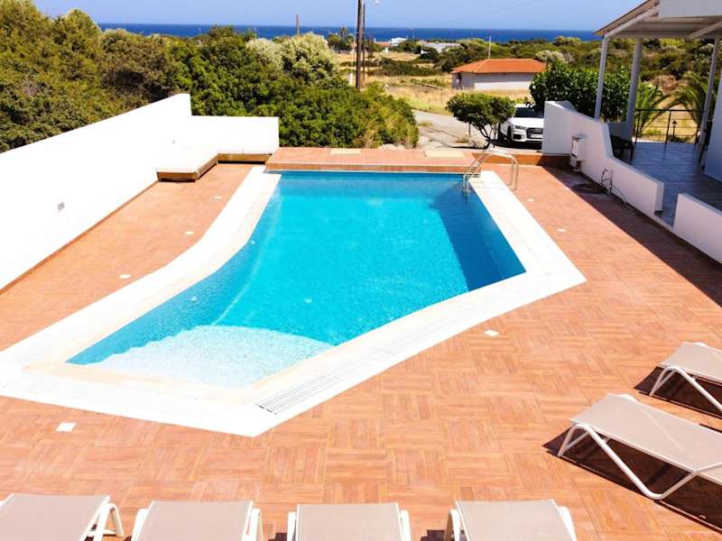 Die Villa Stamos liegt nur 350 Meter vom Strand entfernt und ist von üppiger Natur umgeben. In der Nähe befinden sich die Orte Prasonisi und Kattavia, die sowohl kulturelle als auch natürliche Attraktionen bieten. Der Flughafen Rhodos ist etwa 80 km entfernt und kann gegen Aufpreis mit einem Flughafentransfer erreicht werden.