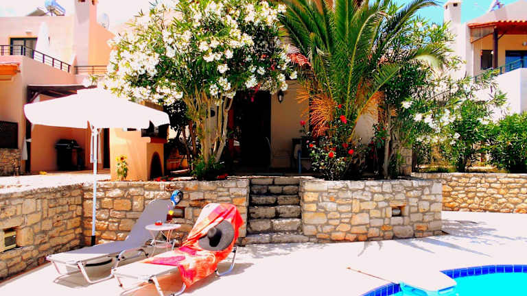 Entspannen Sie am Außenpool der Villa Stella D'oro und genießen Sie die Sonne. Die Umgebung bietet auch eine Vielzahl von Freizeitmöglichkeiten, darunter Wassersportaktivitäten am Meer, Wandern in den umliegenden Bergen und Erkundungstouren in den nahegelegenen Städten Chania und Rethymno.