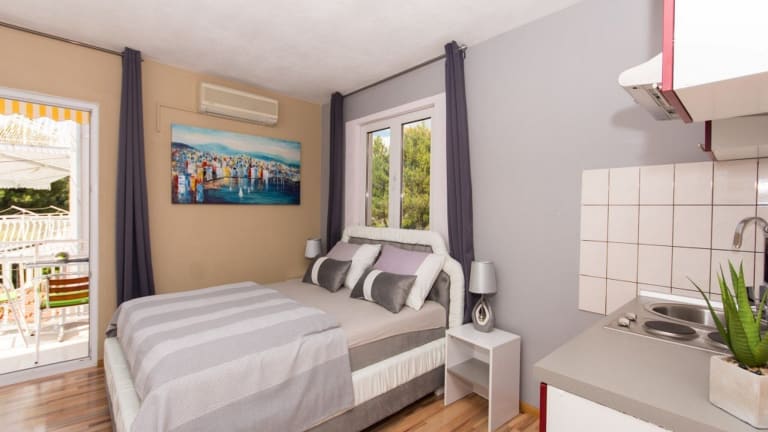 Verbringen Sie Ihren Urlaub im Apartmenthaus Villa Stil, nur 400 m vom Strand entfernt. Genießen Sie den Swimmingpool und die Cocktail-Poolbar sowie die komfortablen Apartments mit Klimaanlage und Balkon oder Terrasse. Die Villa Stil bietet Ihnen auch eine gut ausgestattete Küche oder Küchenzeile in jedem Apartment. Entspannen Sie am Pool mit kostenfreiem WLAN und Liegestühlen und lassen Sie sich auf Wunsch hausgemachte Mahlzeiten zubereiten. Trogir ist nach einem angenehmen 20-minütigen Spaziergang am Strand erreichbar.