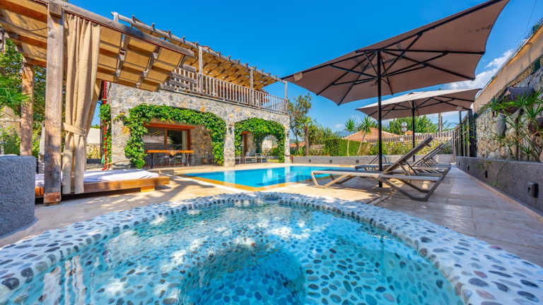 Die Villas Kayaköy bieten Ihnen eine voll gesicherte Unterkunft zur Selbstverpflegung in Kayaköy. Genießen Sie den beheizten Außenpool, den Whirlpool und das kostenfreie WLAN. Die Villa ist klimatisiert und verfügt über einen Balkon mit Pool- und Bergblick. Entspannen Sie im Garten, nutzen Sie den Grillplatz oder die Terrasse. Kostenlose Parkplätze stehen zur Verfügung. Die Lage ist ideal, um die Geisterstadt Levissi und die Burg von Fethiye zu erkunden. Auch der Flughafen Dalaman ist nicht weit entfernt.